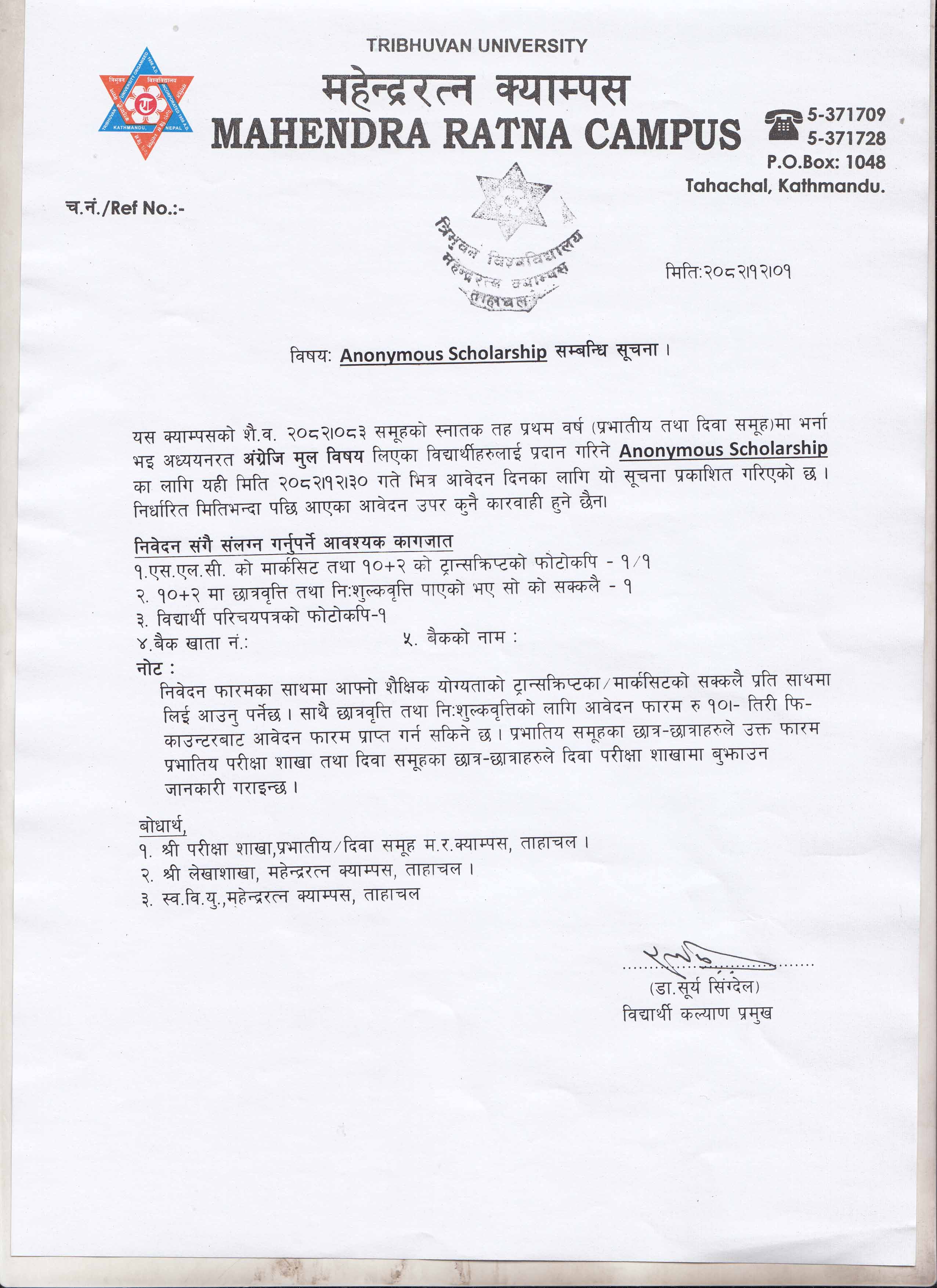Mahendra Ratna Campus is a pioneer teacher education campus under Tribhuvan University (TU) established originally as a College of Education in 1956 to continue the teacher training programs of the Nepal government that were initiated in 2008 in the name of Normal Educational Training.