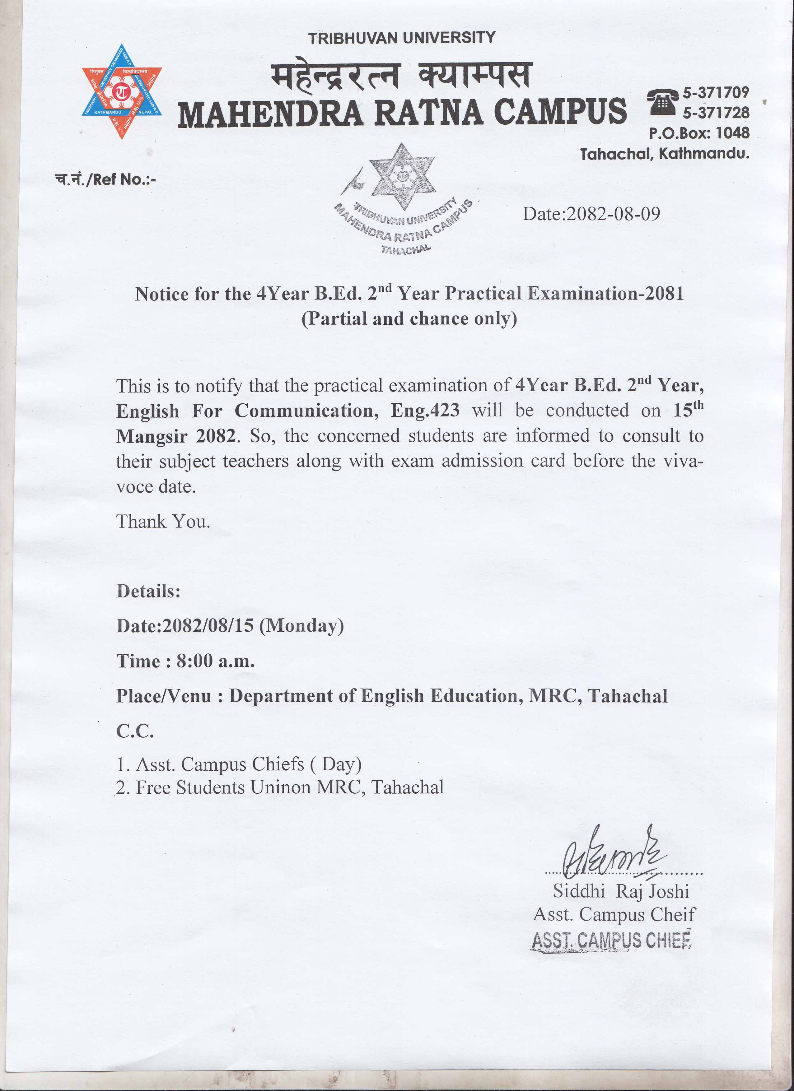B.Ed 4th year Preboard and 2nd year mid ternm exam notice