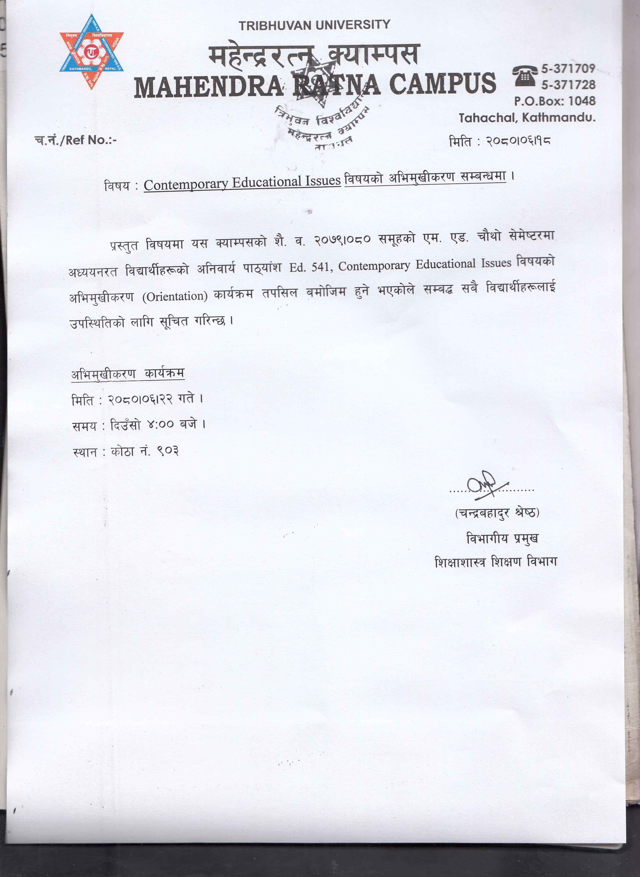 Contemporary Educational Issues Orientation notice