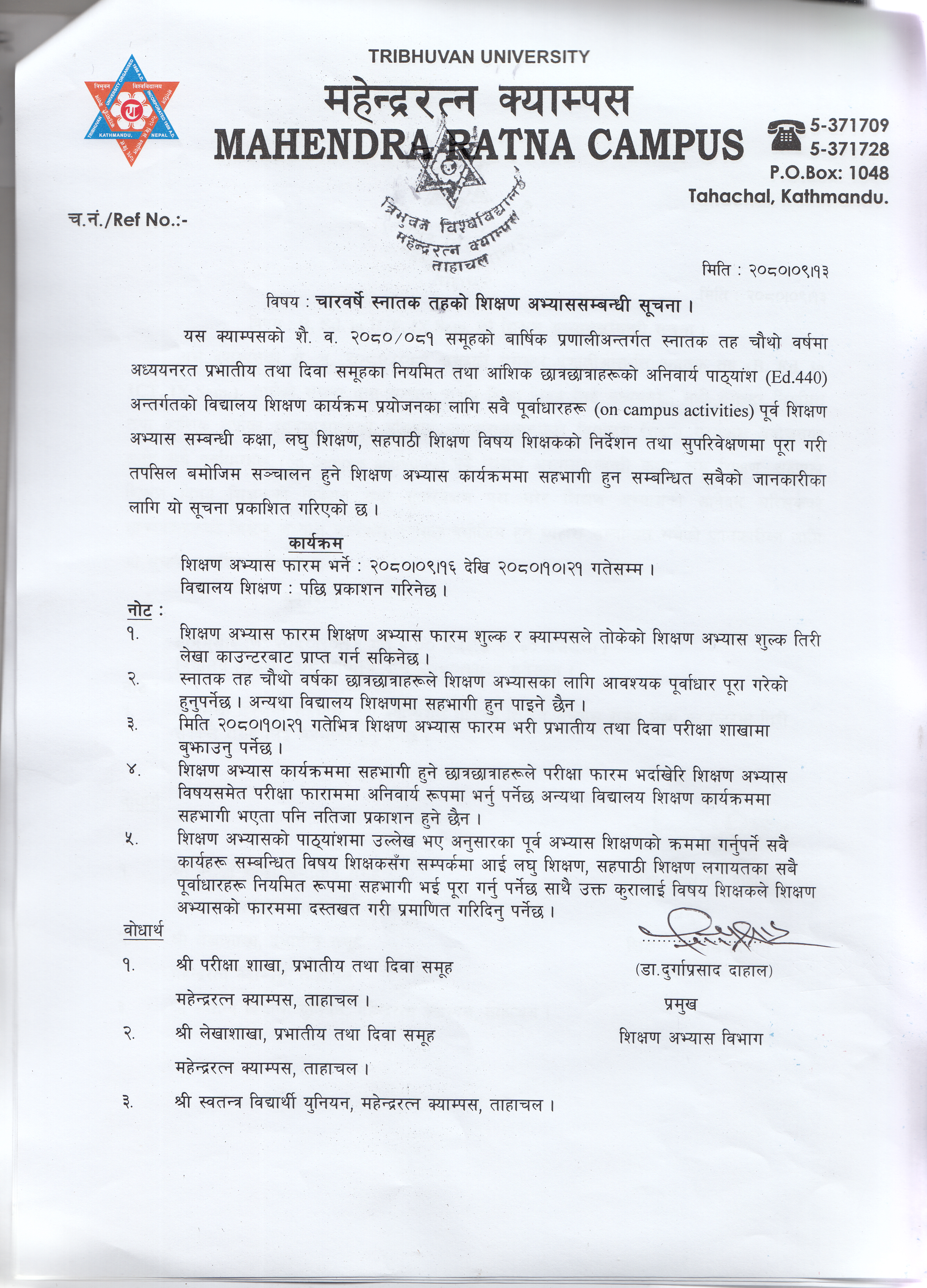 B.Ed 4th year Preboard and 2nd year mid ternm exam notice