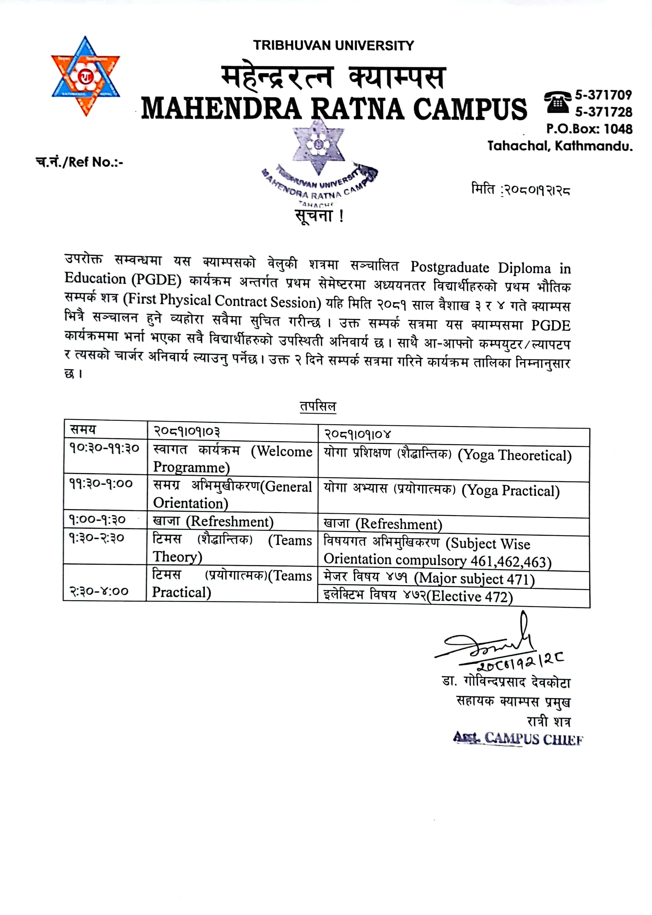 Notice for b.ed 2nd year english practical exam