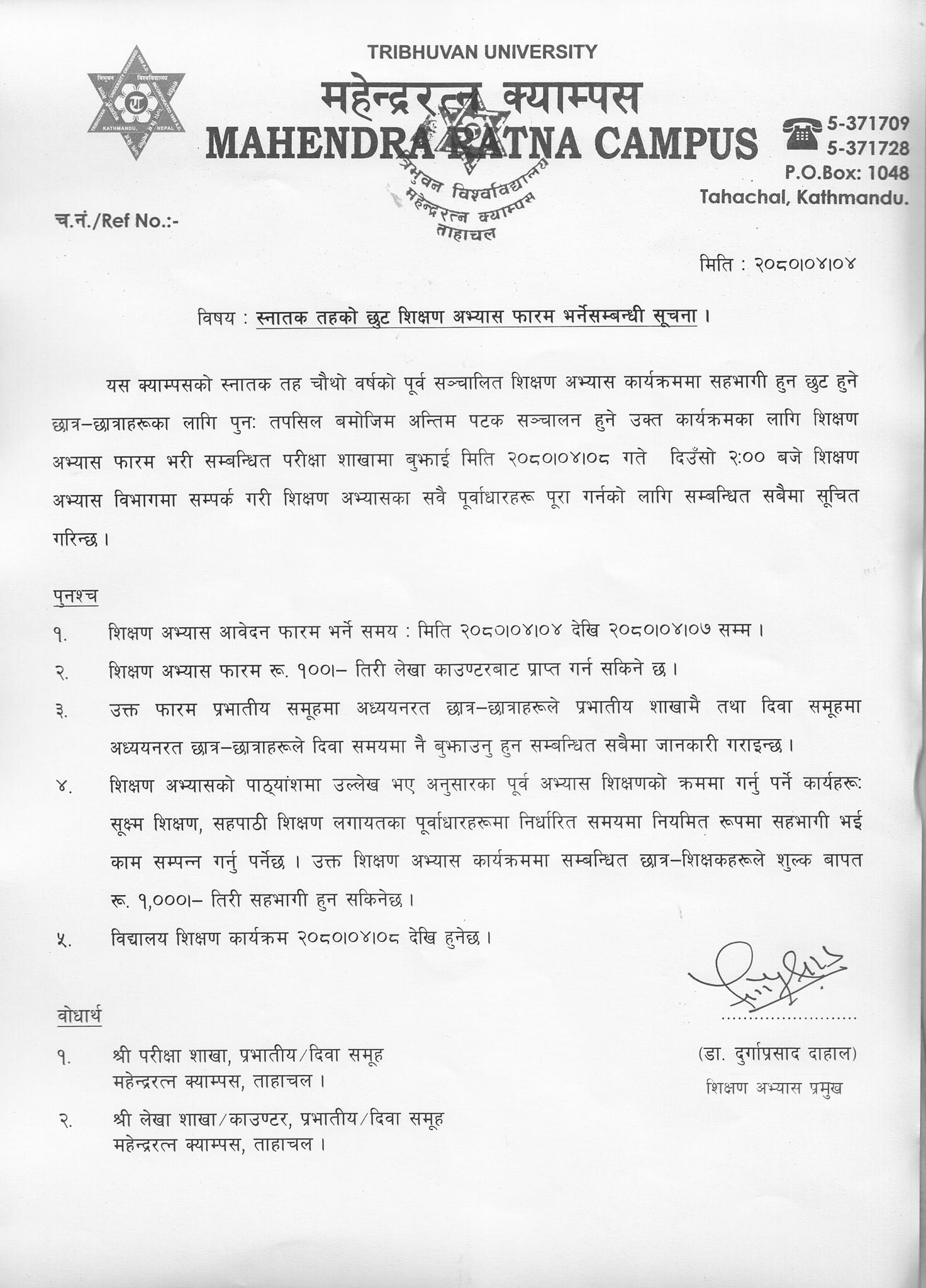 B.Ed 4th year Preboard and 2nd year mid ternm exam notice
