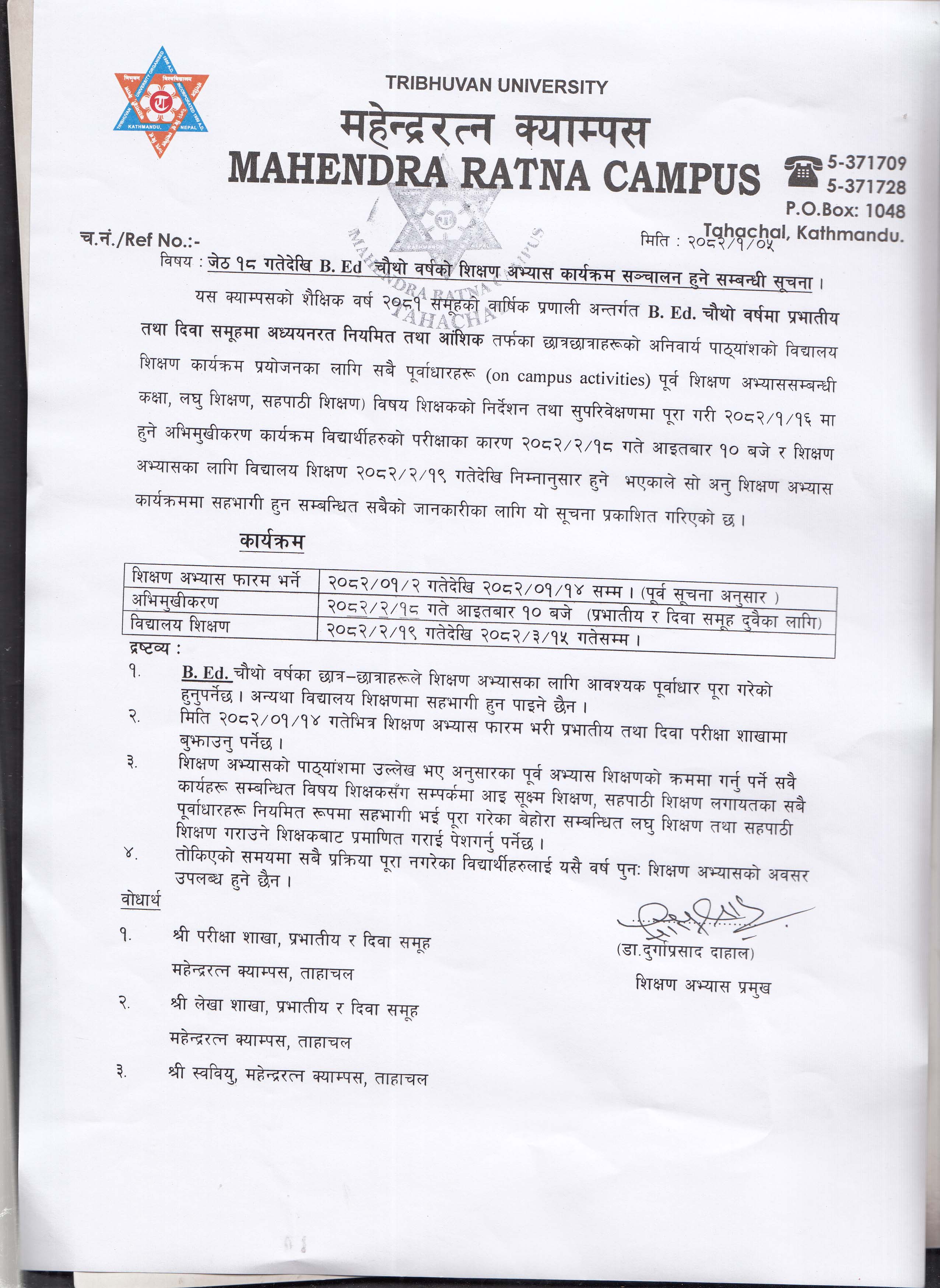 B.Ed 4th year Preboard and 2nd year mid ternm exam notice