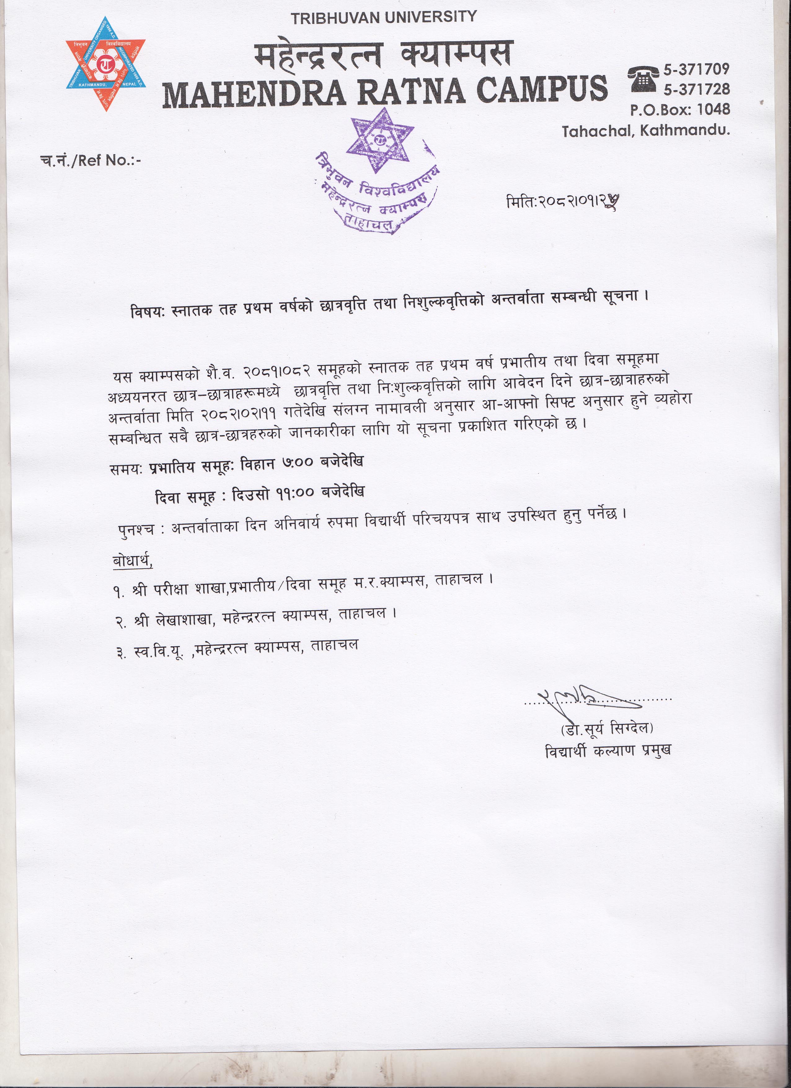 Notice regarding Scholarship