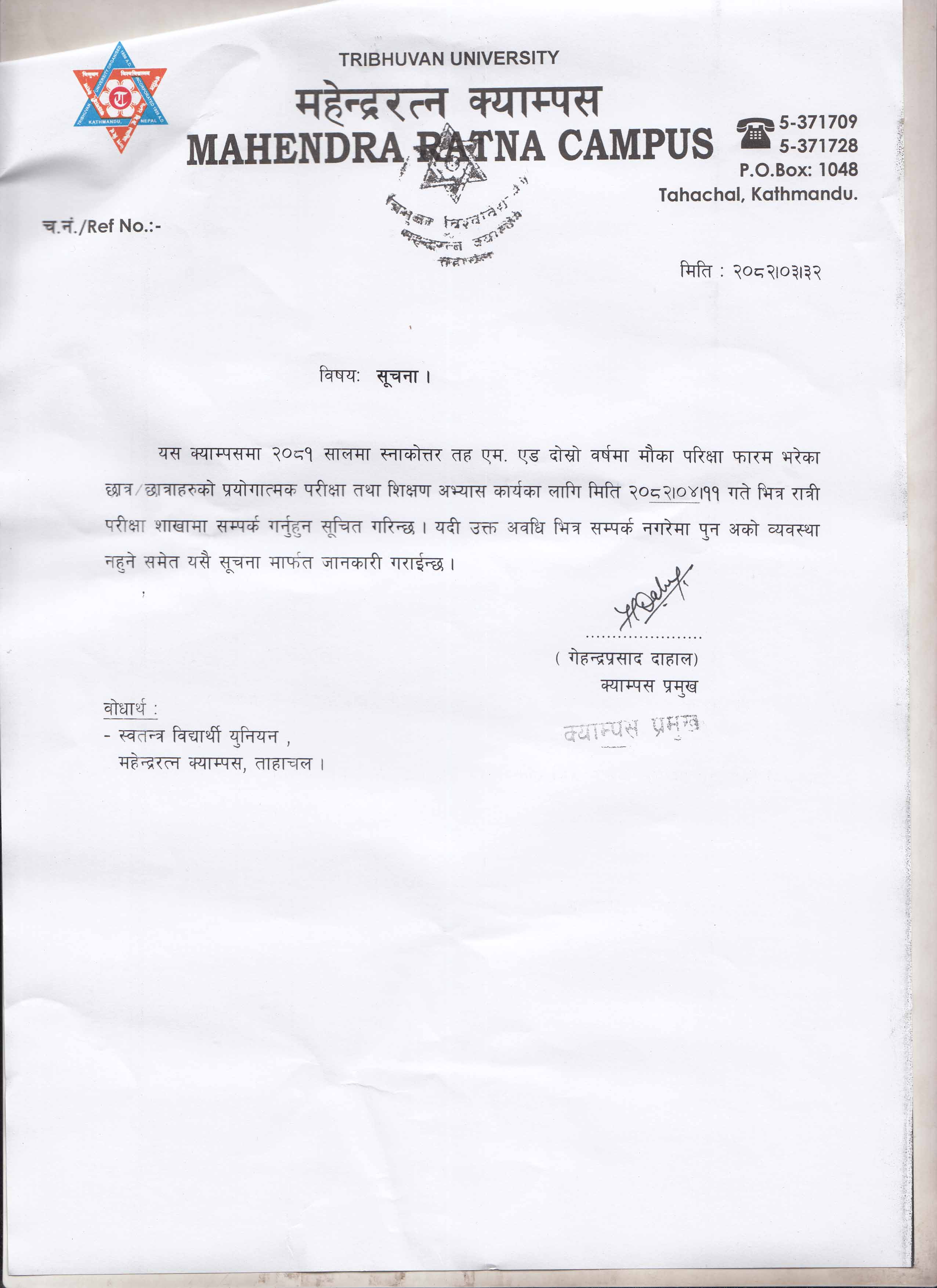 B.Ed 4th year Preboard and 2nd year mid ternm exam notice