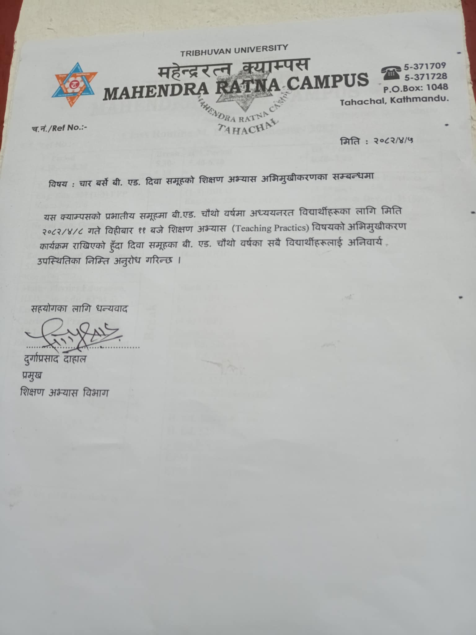 Notice for b.ed 2nd year english practical exam