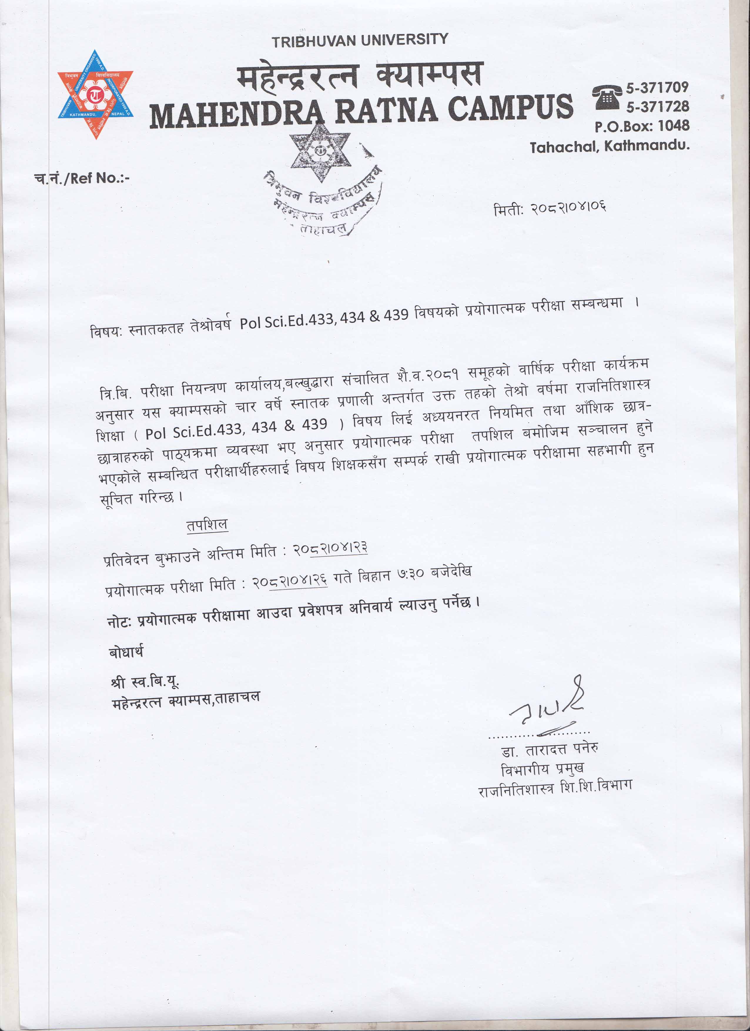 Pol. Science Practical Notice