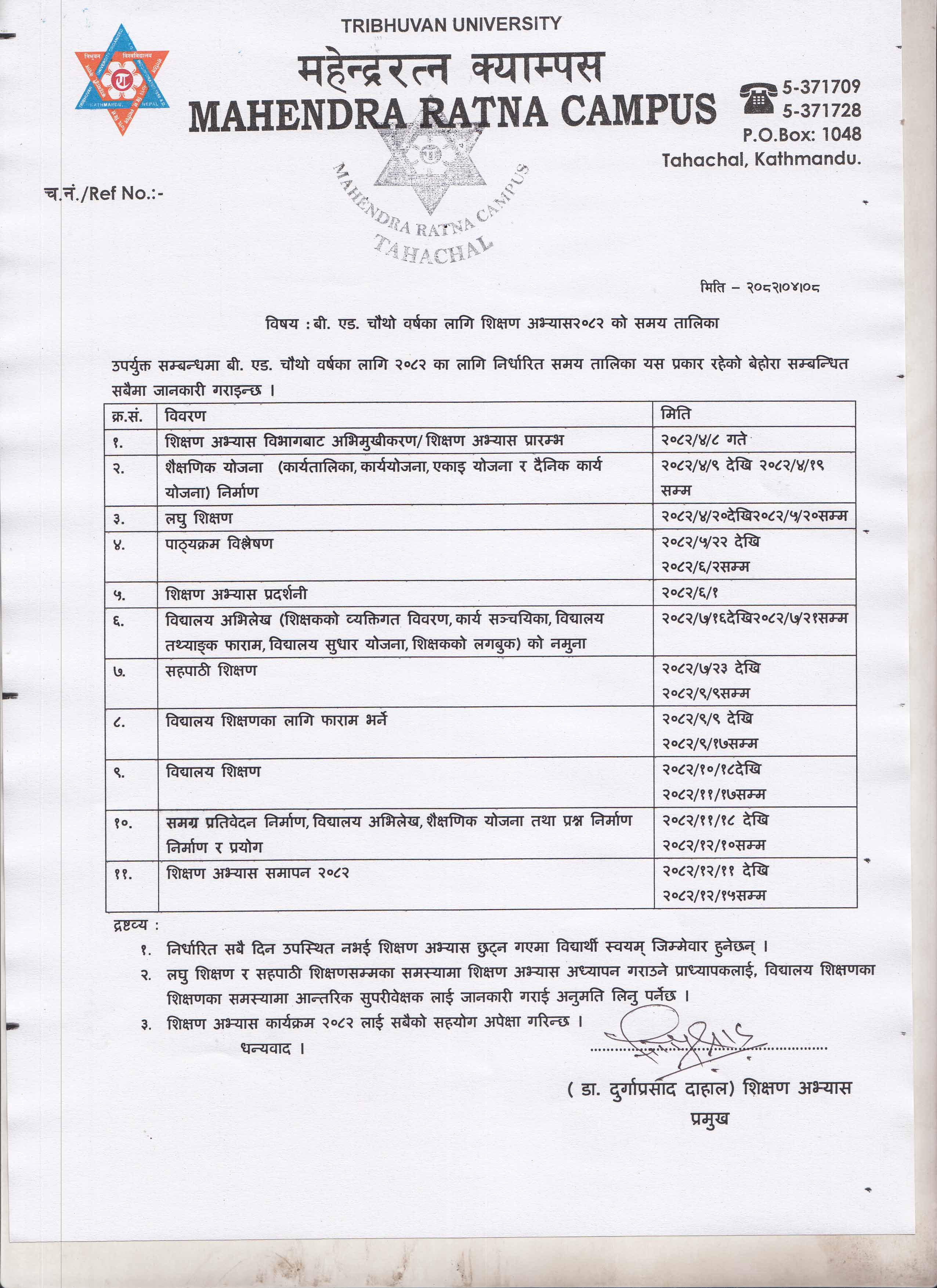 Notice for b.ed 2nd year english practical exam