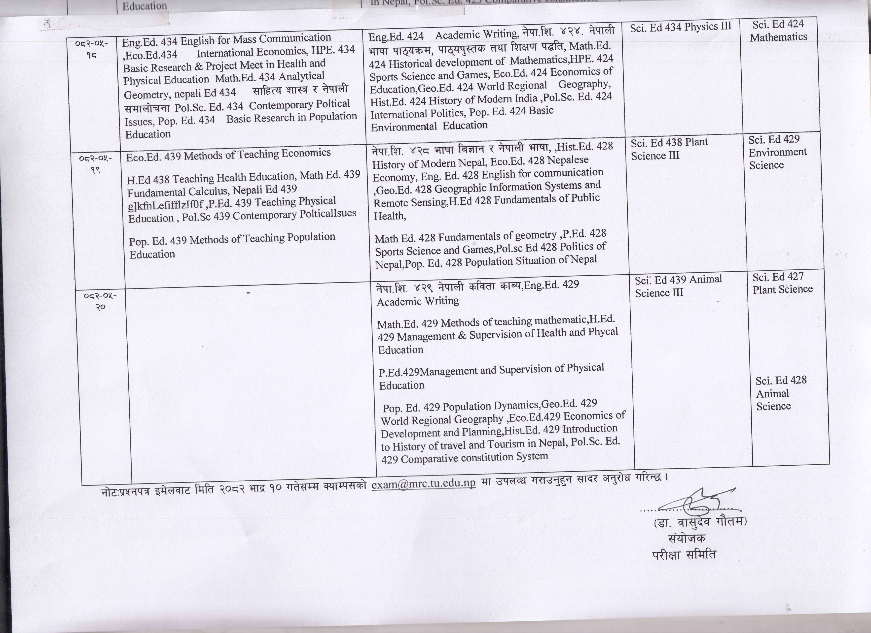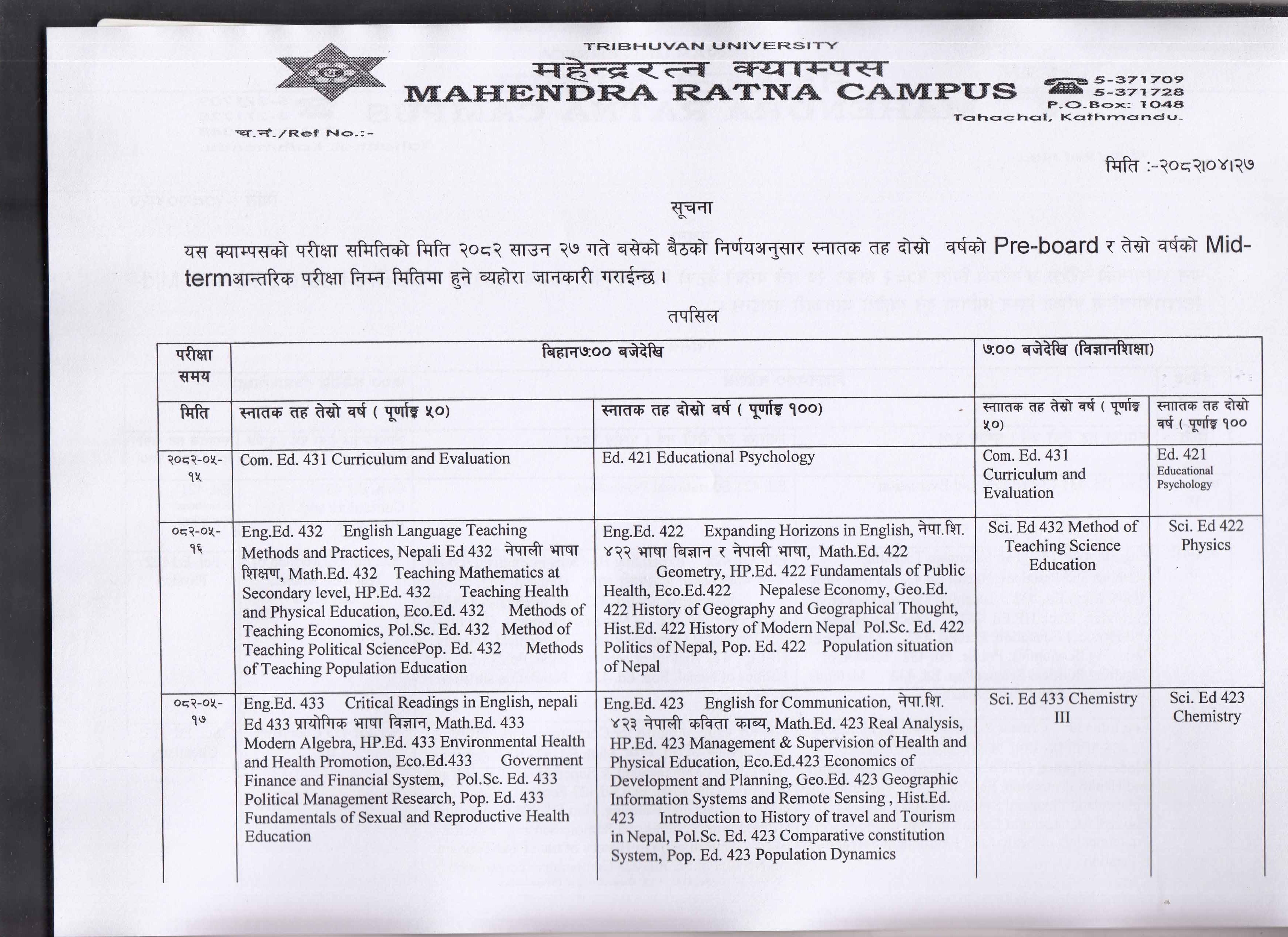 B.Ed 4th year Preboard and 2nd year mid ternm exam notice