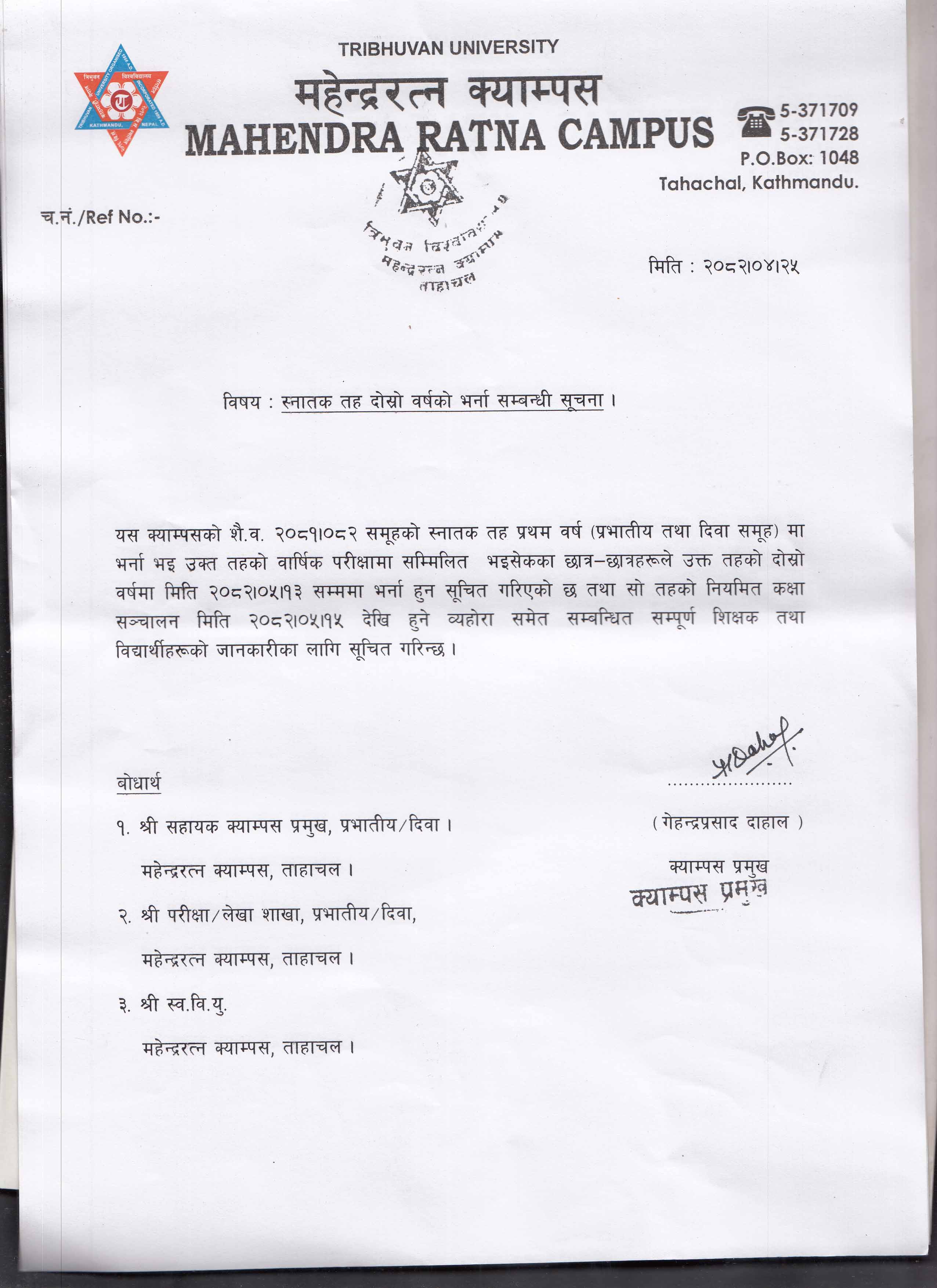 Admission open notice for b.ed 2nd second year