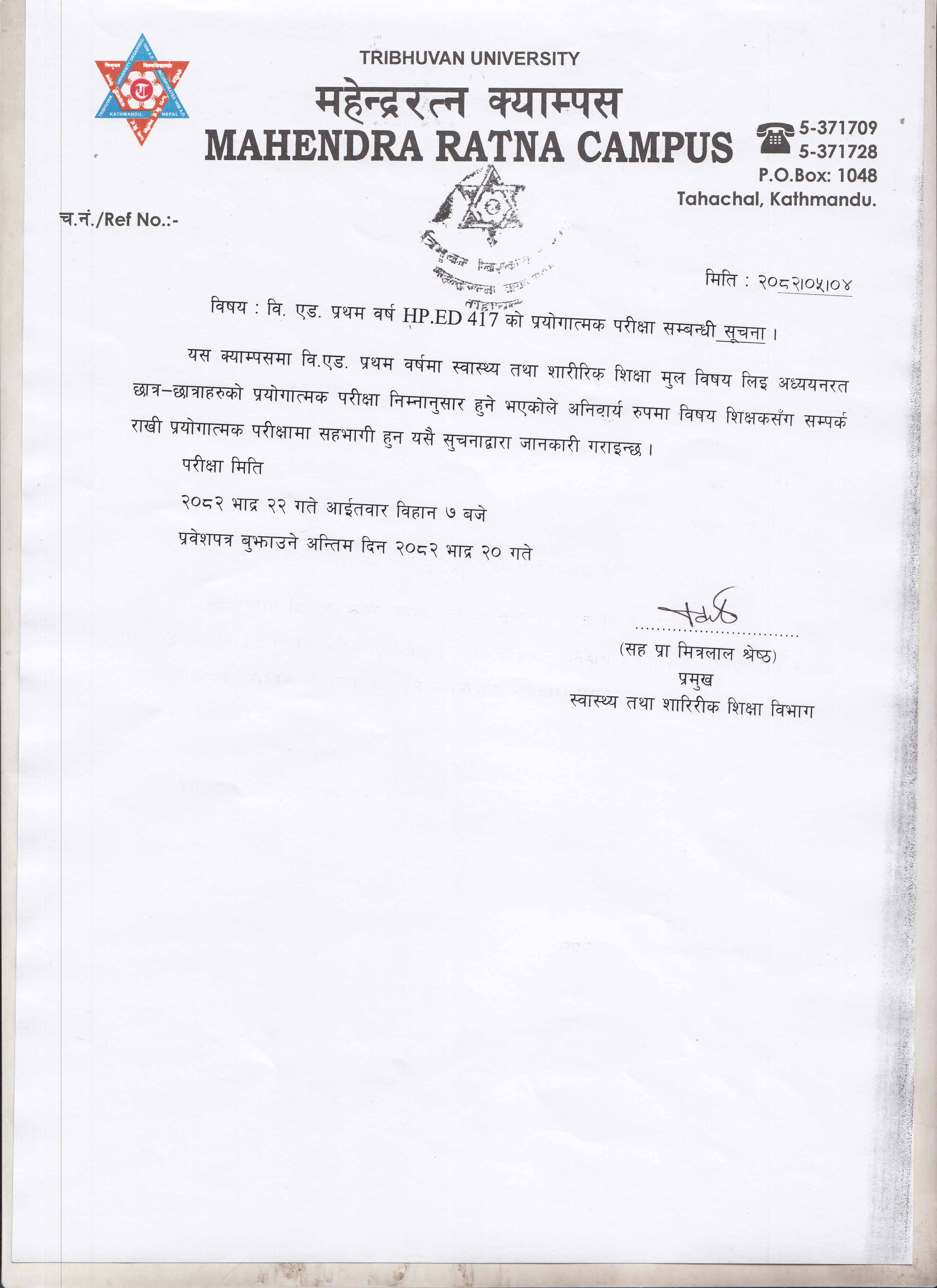 B.Ed 4th year Preboard and 2nd year mid ternm exam notice